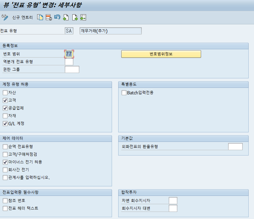 Numer range - 77이라는 numberrnage가 시스템에서 알아서 전표를 체번 한다.